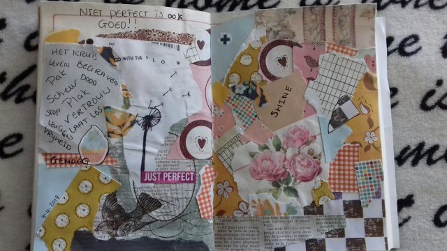 Zoals wellicht vele van de knutselaars hier, heb ik een bak met restjes papier die ik over heb van vorige projecten. Ze liggen al tijden in een bak en nu opeens bedacht ik mij…. Wat als ik blindelings een papiertje pak en een stuk afscheur en het opplak. Ik weet dat dit heel lastig voor mij is omdat ik vind dat iets er mooi en netjes uit moet zien. Maar ik deed het toch. Heel erg lastig om de controle los te laten. Maar uiteindelijk mag het resultaat er zijn. Het is niet perfect, dat ben ik ook niet…. EN DAT IS OKE!!!