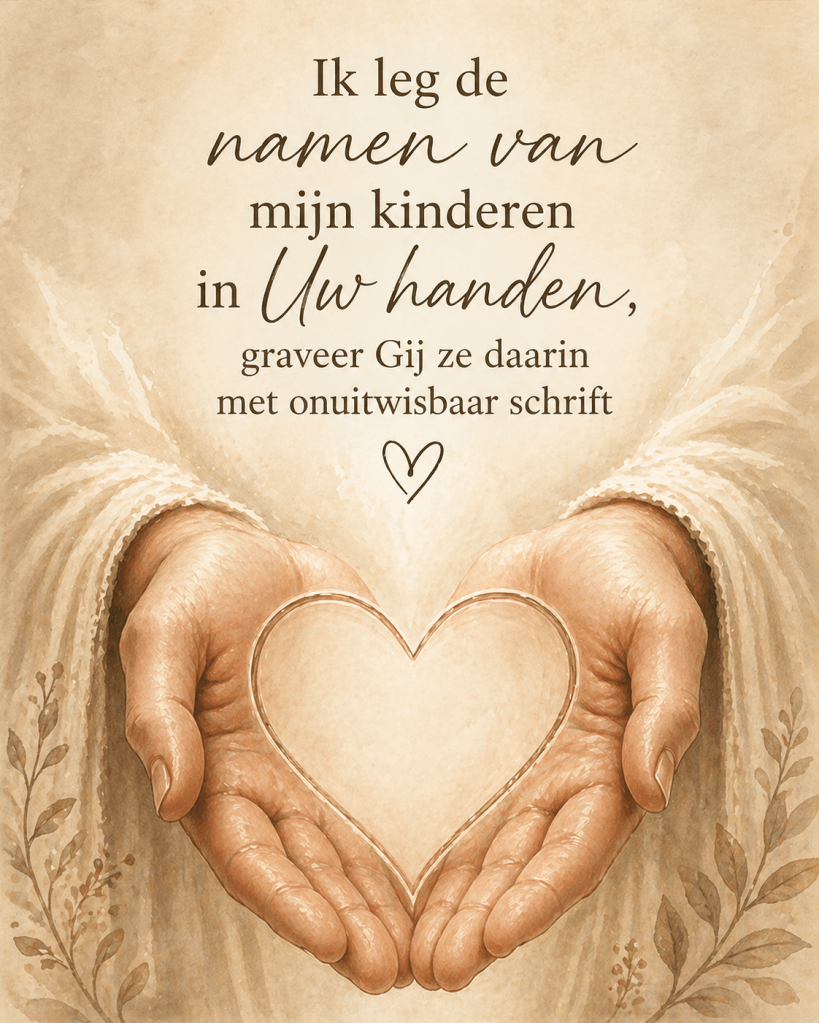 Ik maakte de volgende tip-inn voor in je Bijbel. Schrijf de namen van hen die je lief zijn in de handen.